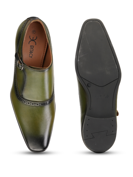 Extacy Olive Genuine Leather Derby Casual Shoes For Men Exm010210 C084